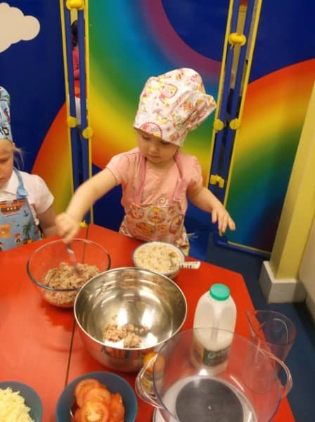Through cooking the children are learning about where food comes from, measurement and numbers, they develop their talking and listening skills, and they get to try out new flavours and food.