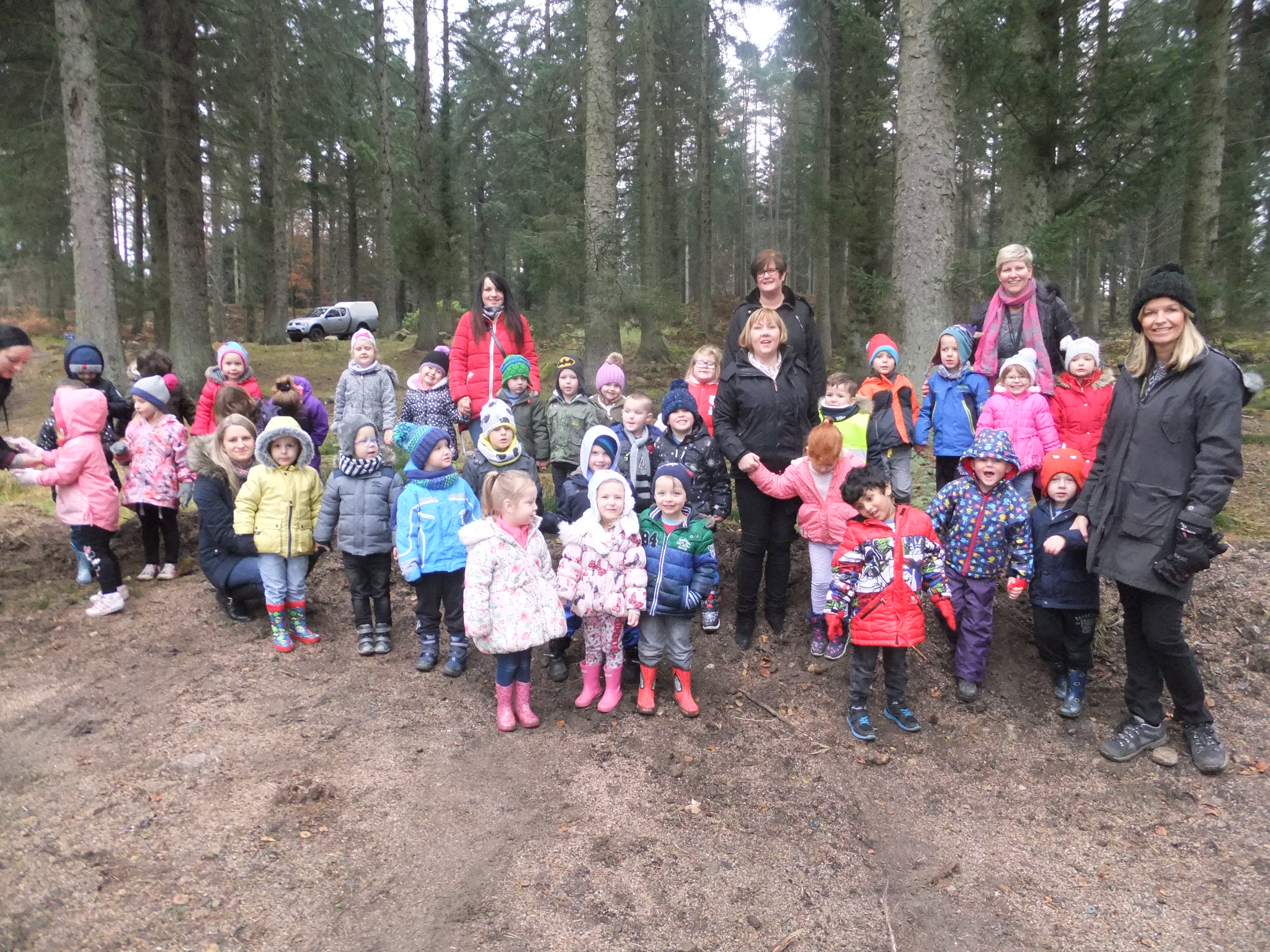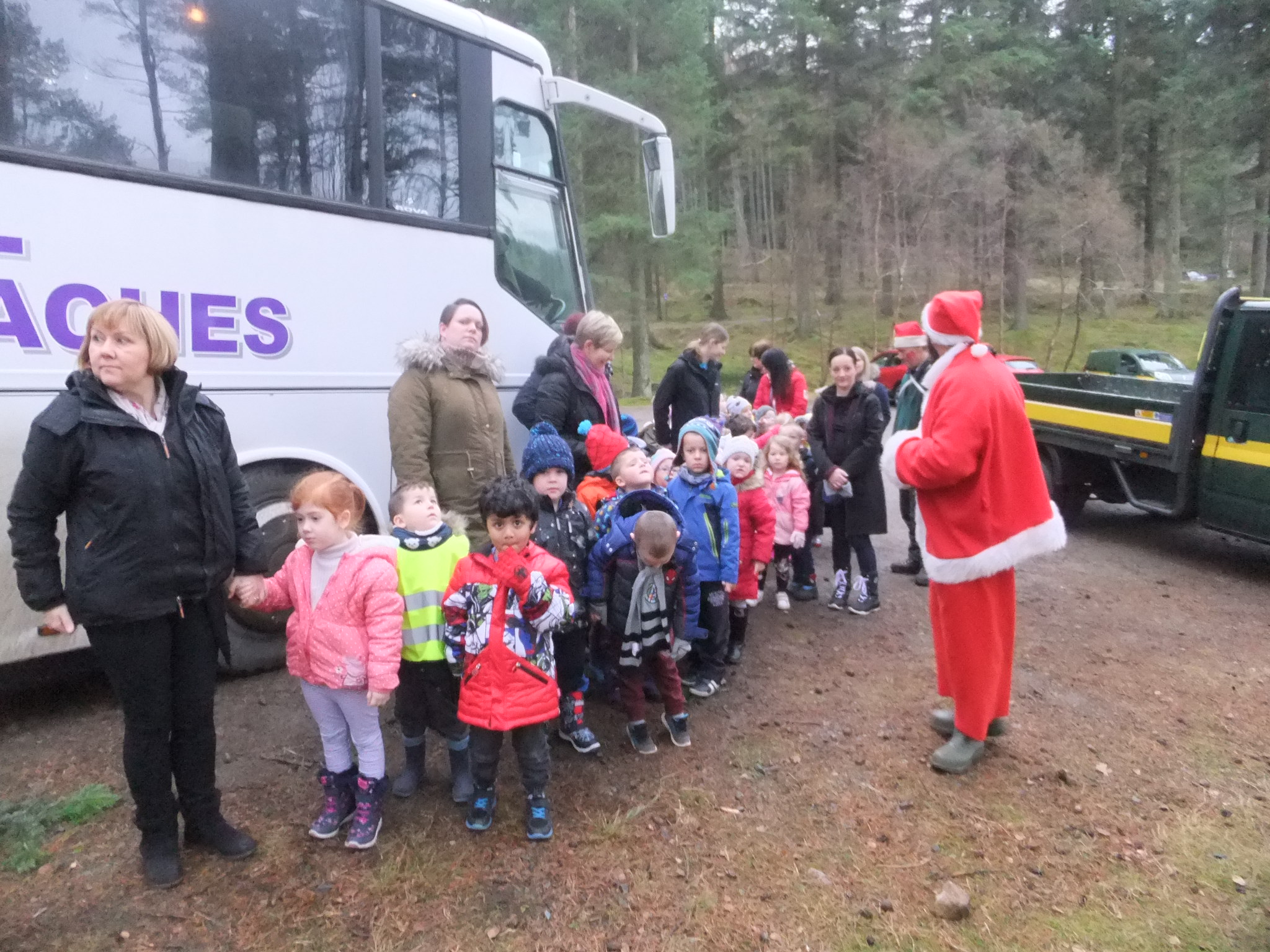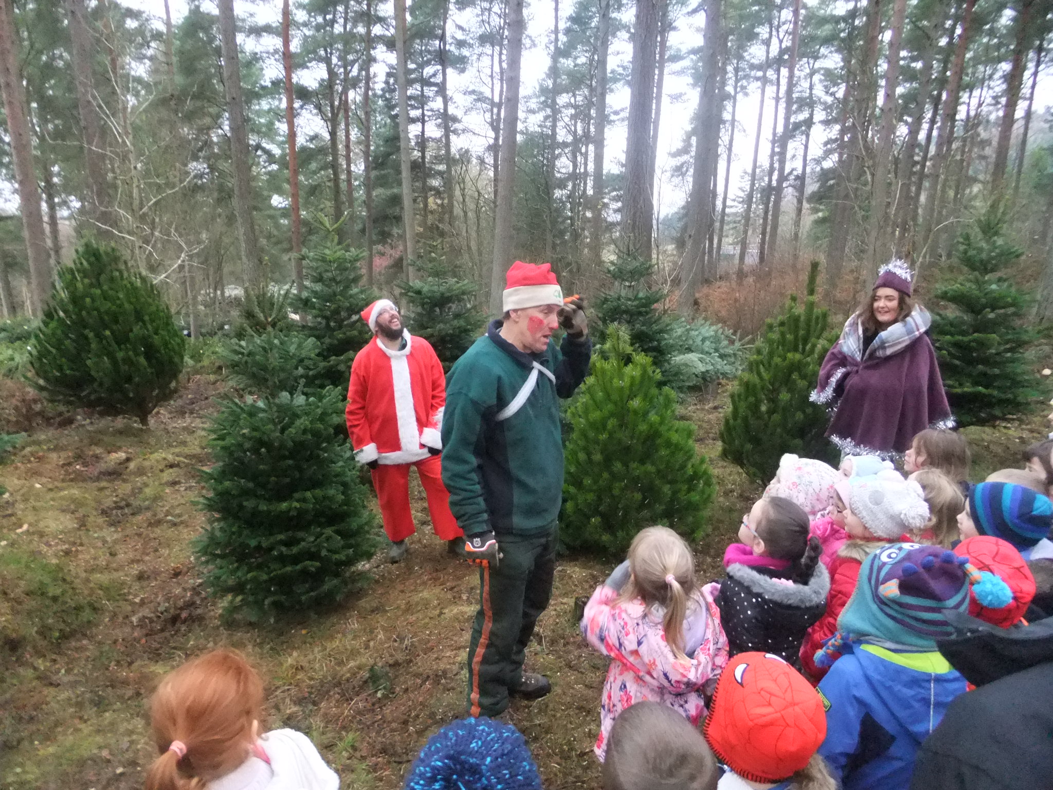 On Tuesday we went on a special trip to Tyrebagger Forest. We went on a forest walk adventure and we were able to choose our own Christmas tree for the Nursery. Some of Santa’s friends were there to help us and we all had a great time. Thank you to everyone who volunteered to help and to those parents who came with us on the day. Have a look at our photos to see what we got up to!