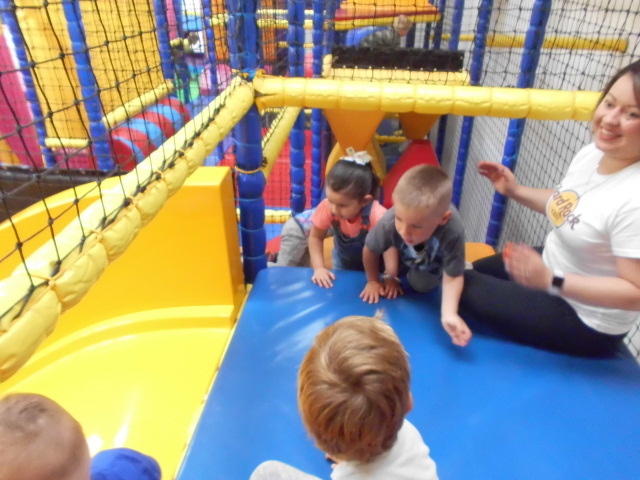 We had a great time at Hoodles yesterday. Everyone enjoyed playing in the soft play area and outside, in the open play area. The children were very active so we had some sleepy people on the bus home. Have a look at our photos!