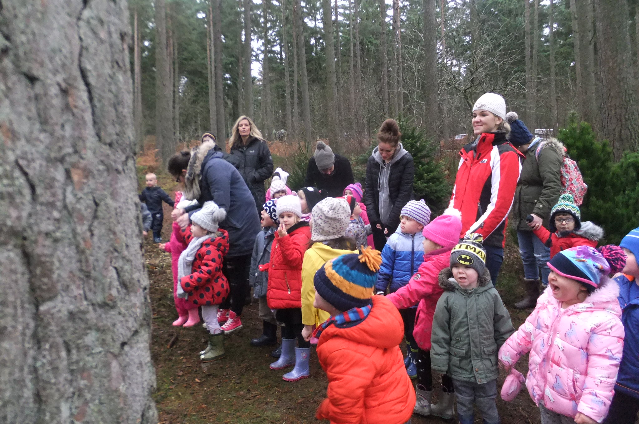 Today we went on a special trip by bus to Tyrebagger Forest to choose a Christmas tree for the Nursery. The children were led on an adventure through the forest by some of Santa’s helpers who were telling us lots of different facts about Christmas. We all had so much fun! Thank you to all the parents who volunteered to help on the trip. Have a look at the photos from our exciting morning!