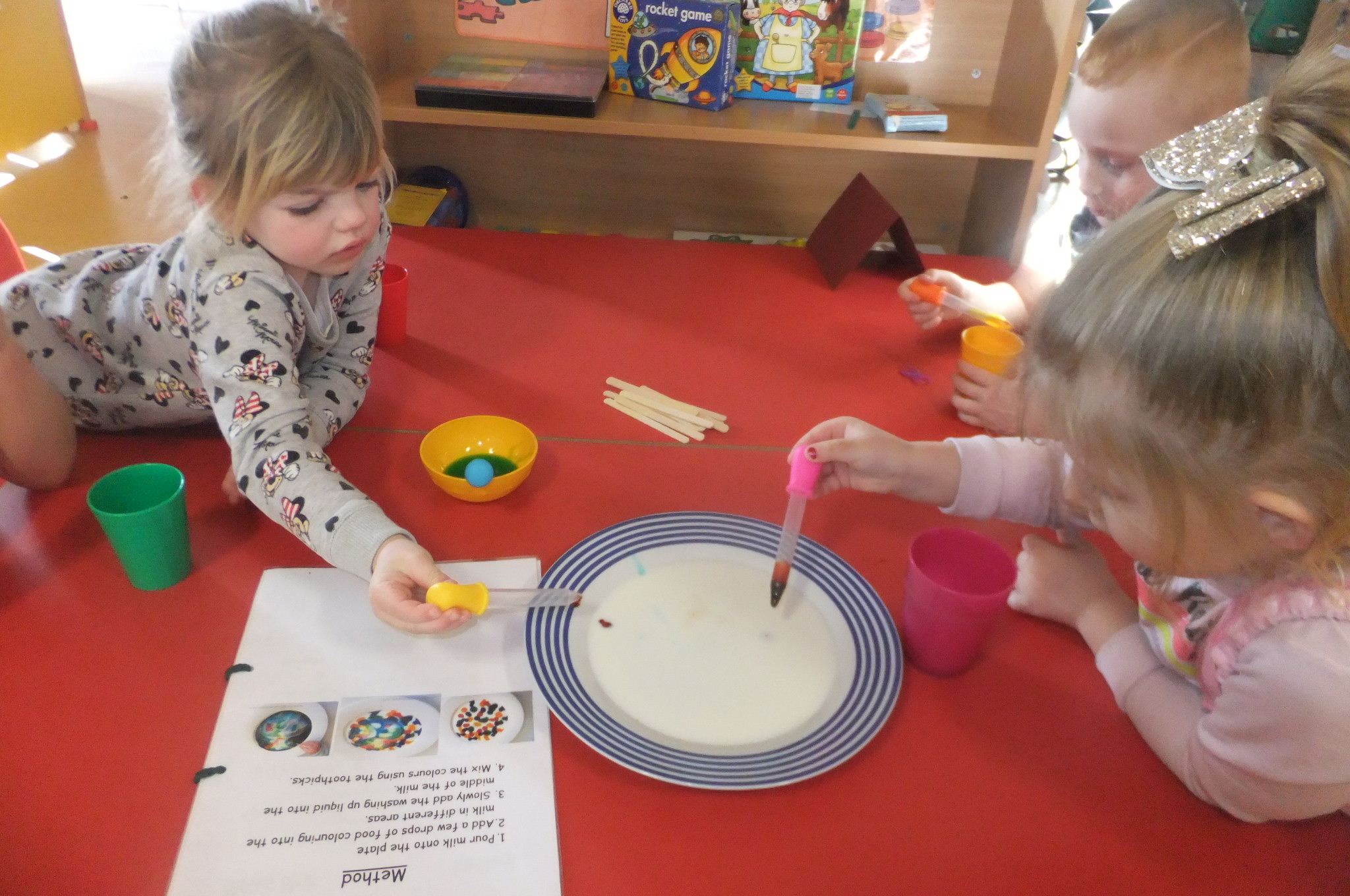 The focus of our open day was Science. The children experimented with a variety of ingredients to create an erupting volcano and magic milk. The children were able to follow verbal instructions along with a visual recipe and method.