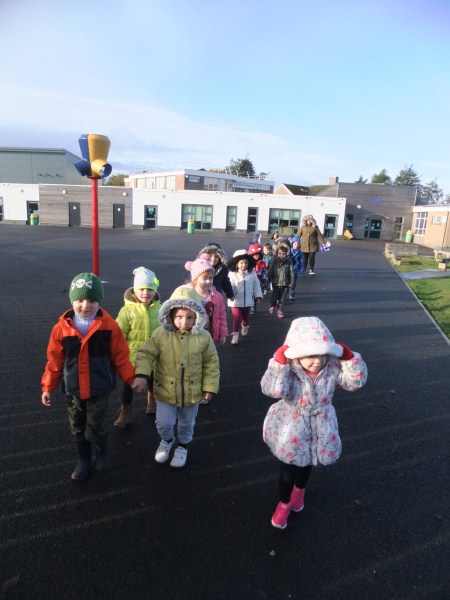 As you know much of our learning has been related to “Autumn” since we came back from the October holidays. We have had great fun walking in the school grounds, hearing the Leaf Man story and making our own pictures of Leaf man. Have a look and see!