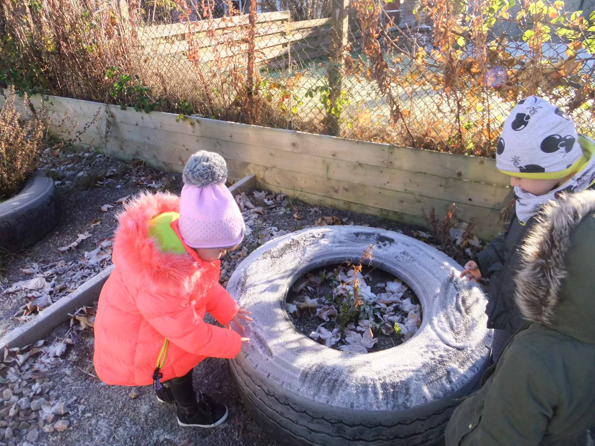 We took advantage of the cold weather last week to find out a bit more about the changing states of water. We went on walks to look at the frosty environment and to see what happened when the frost came inside. Hope you like our photos!