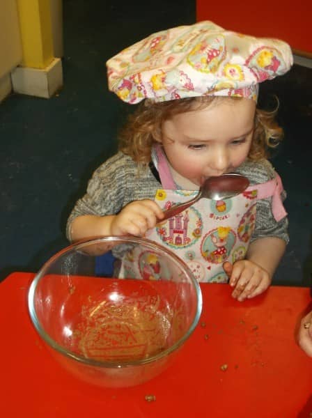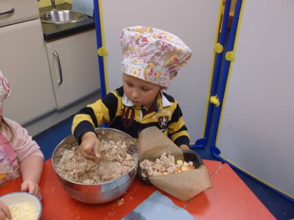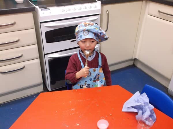 Through cooking the children are learning about where food comes from, measurement and numbers, they develop their talking and listening skills, and they get to try out new flavours and food.