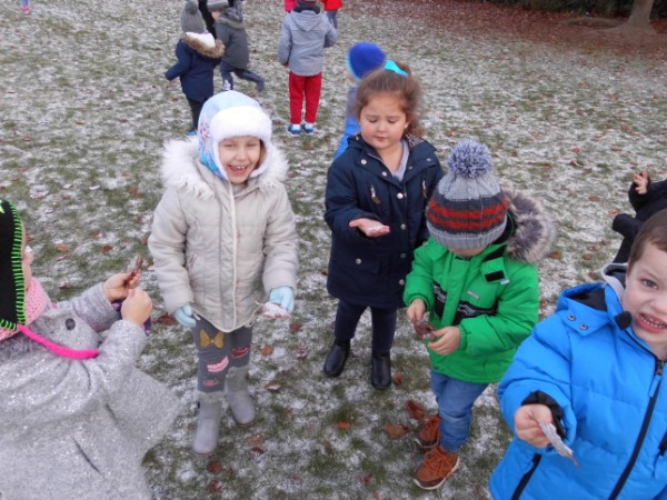 We took advantage of the cold weather last week to find out a bit more about the changing states of water. We went on walks to look at the frosty environment and to see what happened when the frost came inside. Hope you like our photos!